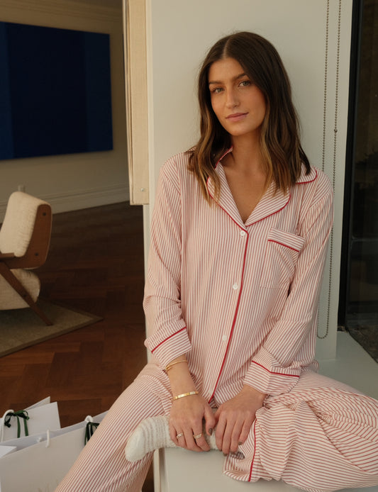 Gisele Modal Long Pj Set Duo Stripe Pine