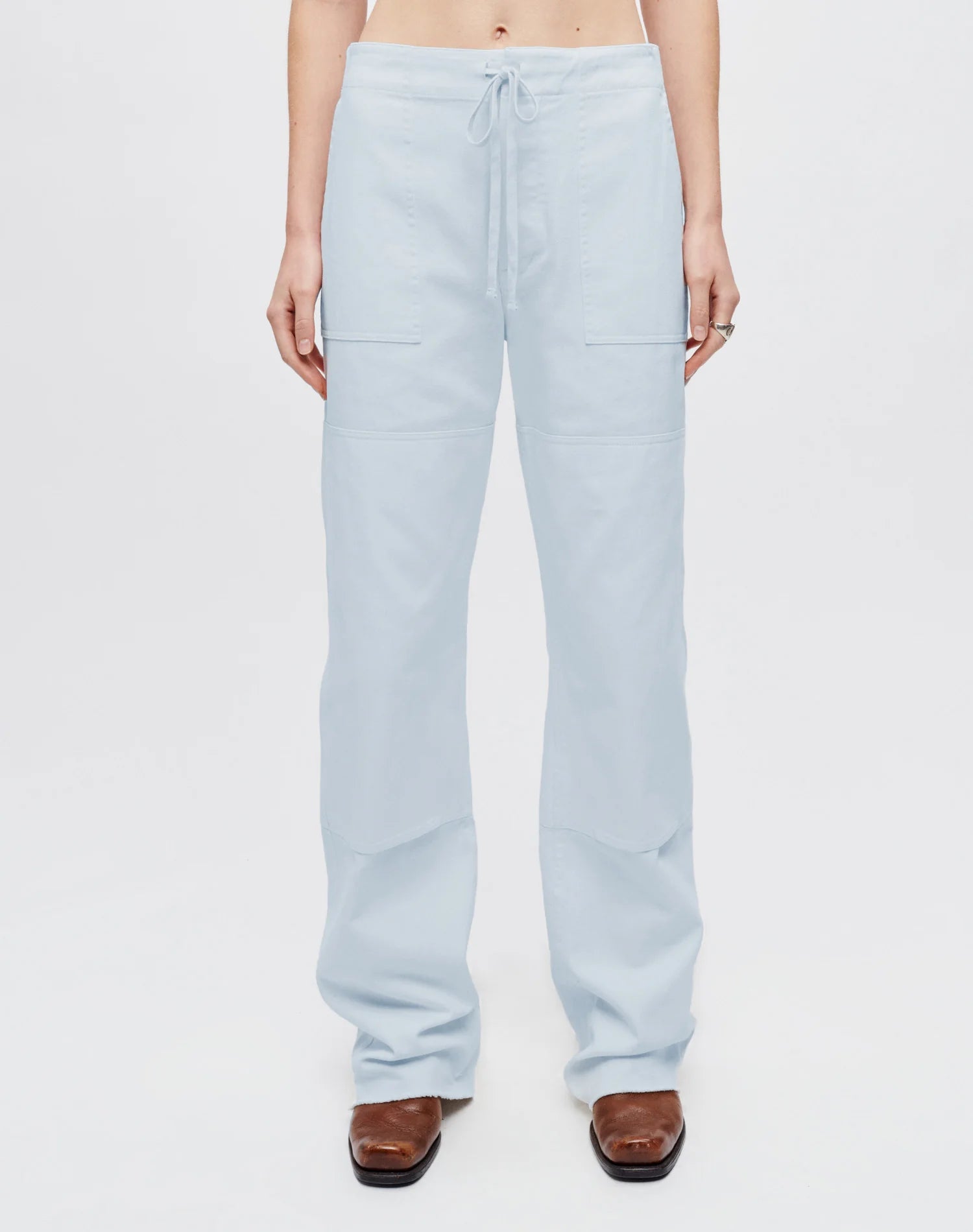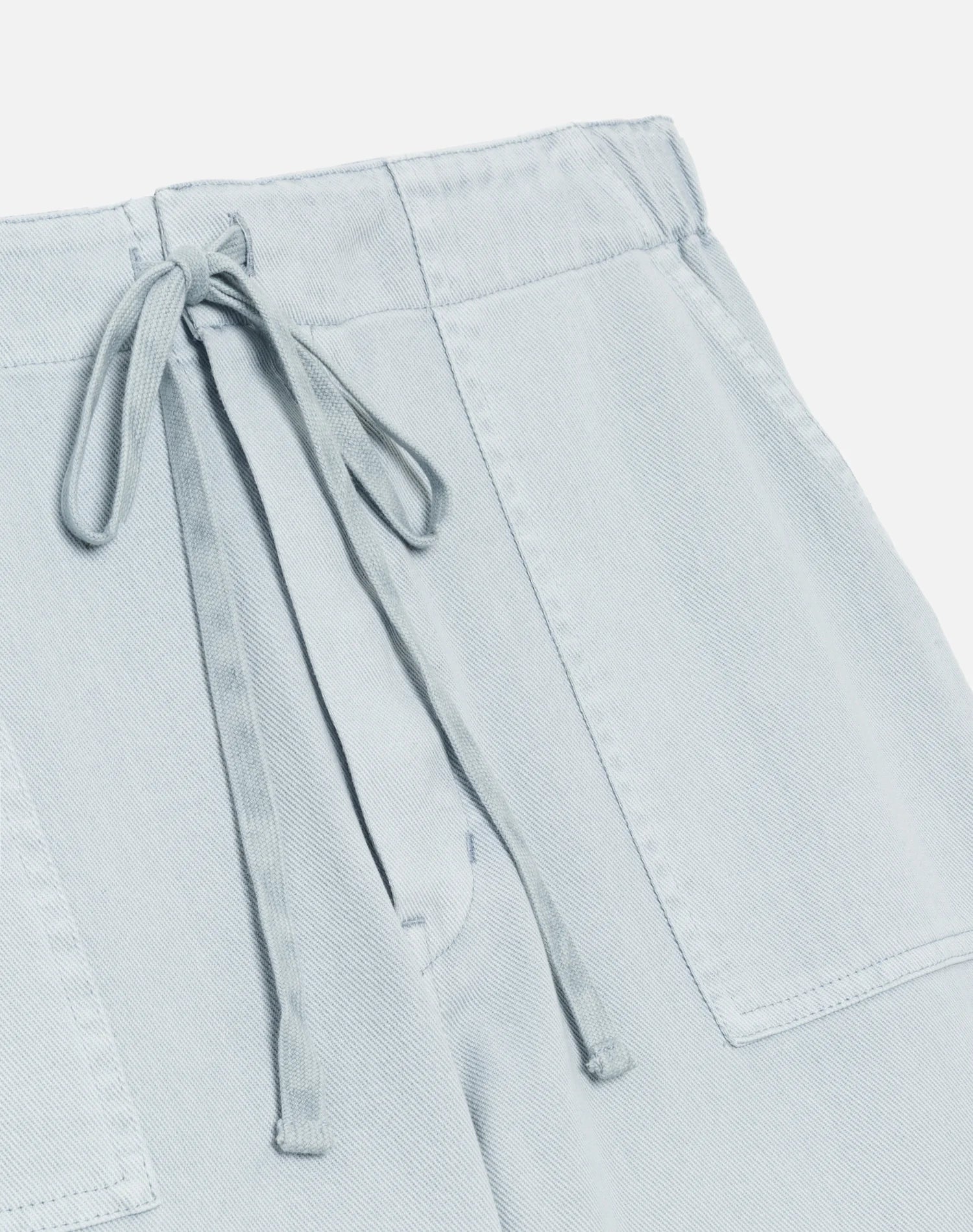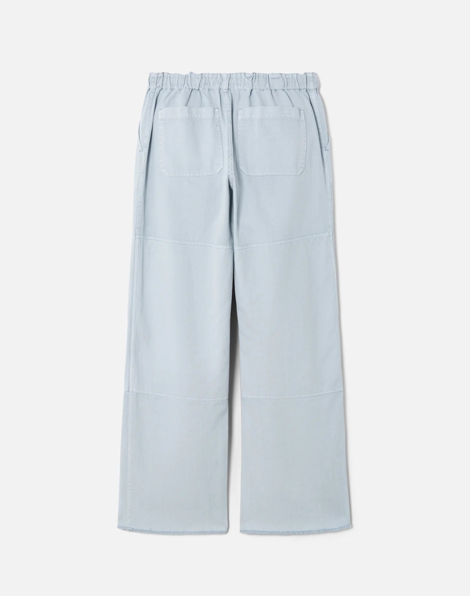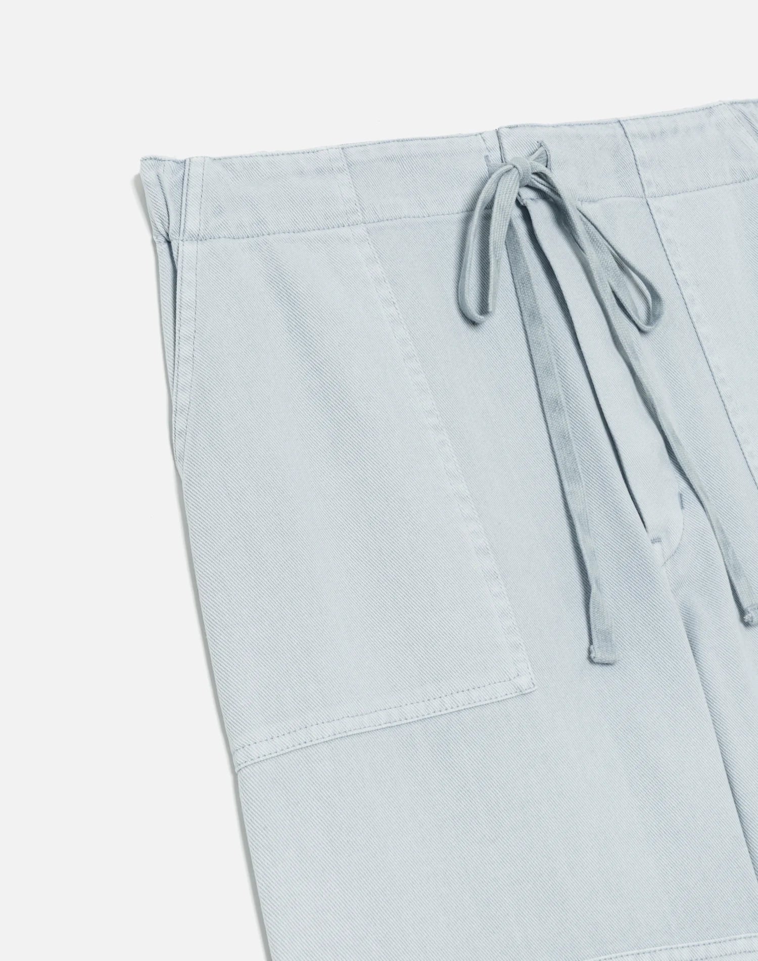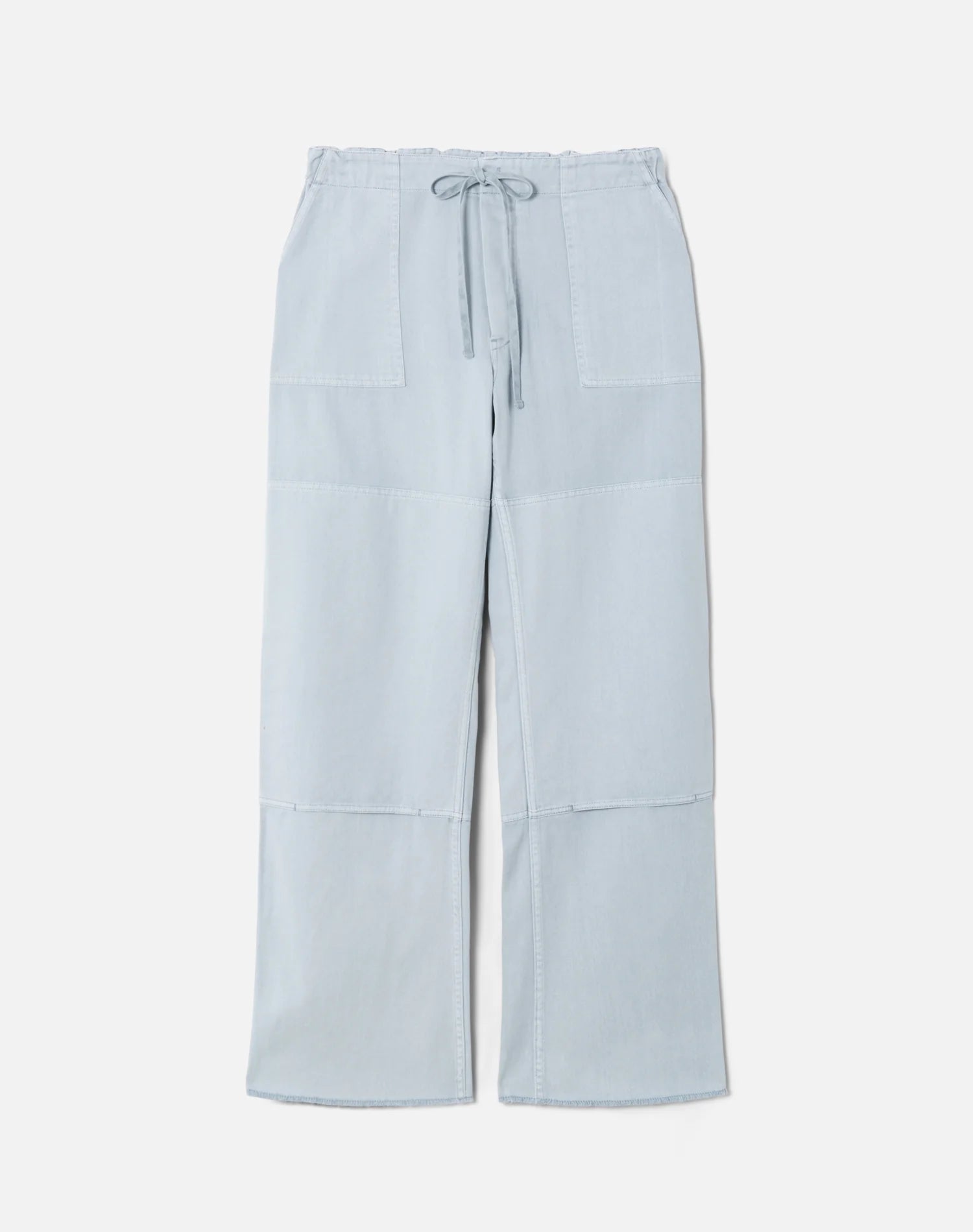 The Beach Pant in Light Blue is inspired by the utility meets play. The beach pant features a double knee patch for durability and elastic at the waistband with added drawstring for ease and custom fit. It is 100% cotton left-hand twill fabric, high rise with a relaxed straight and 33" inseam.