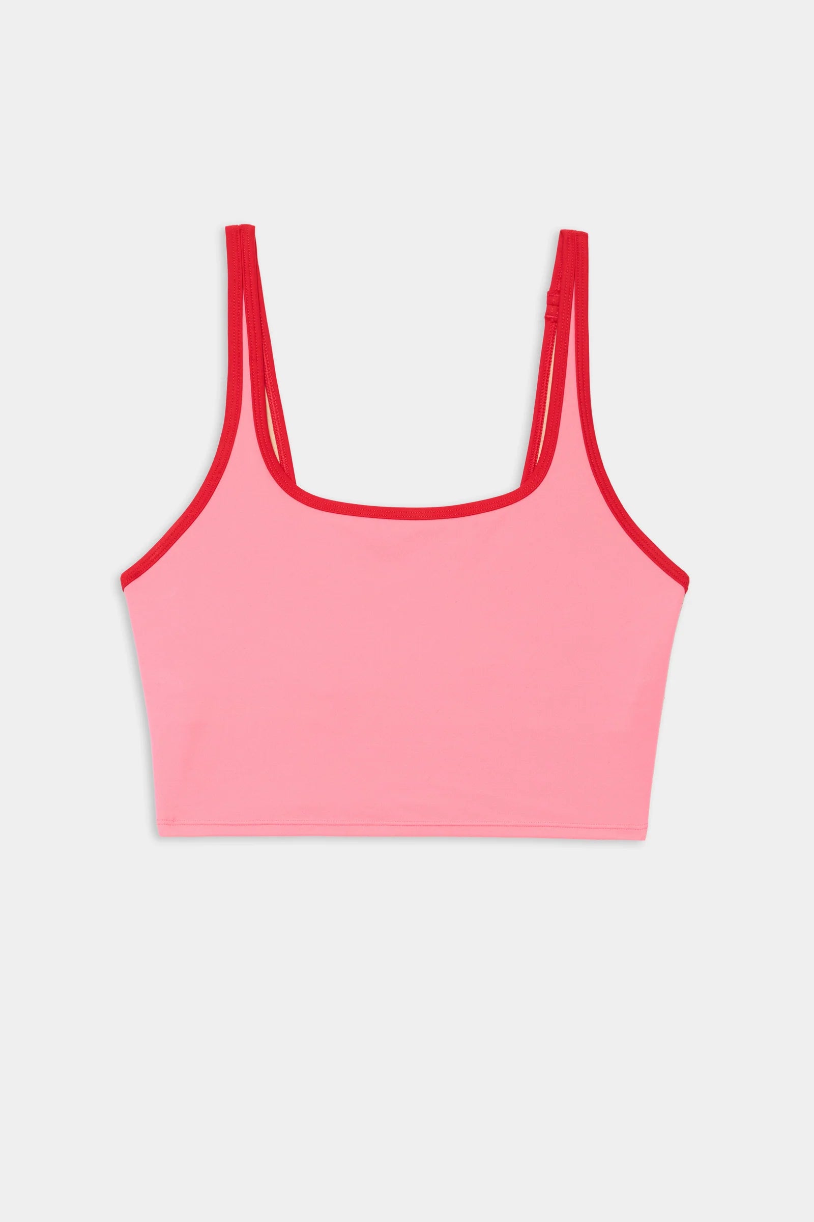 A SUPPORTIVE BRALETTE WITH A SQUARE NECKLINE OUTLINED IN CONTRAST COLOR TRIM. COMPLETE THE LOOK WITH THE MATCHING EASTON HIGH WAIST LEGGING, BOTH IN OUR HIGH PERFORMANCE RIGOR FABRIC.