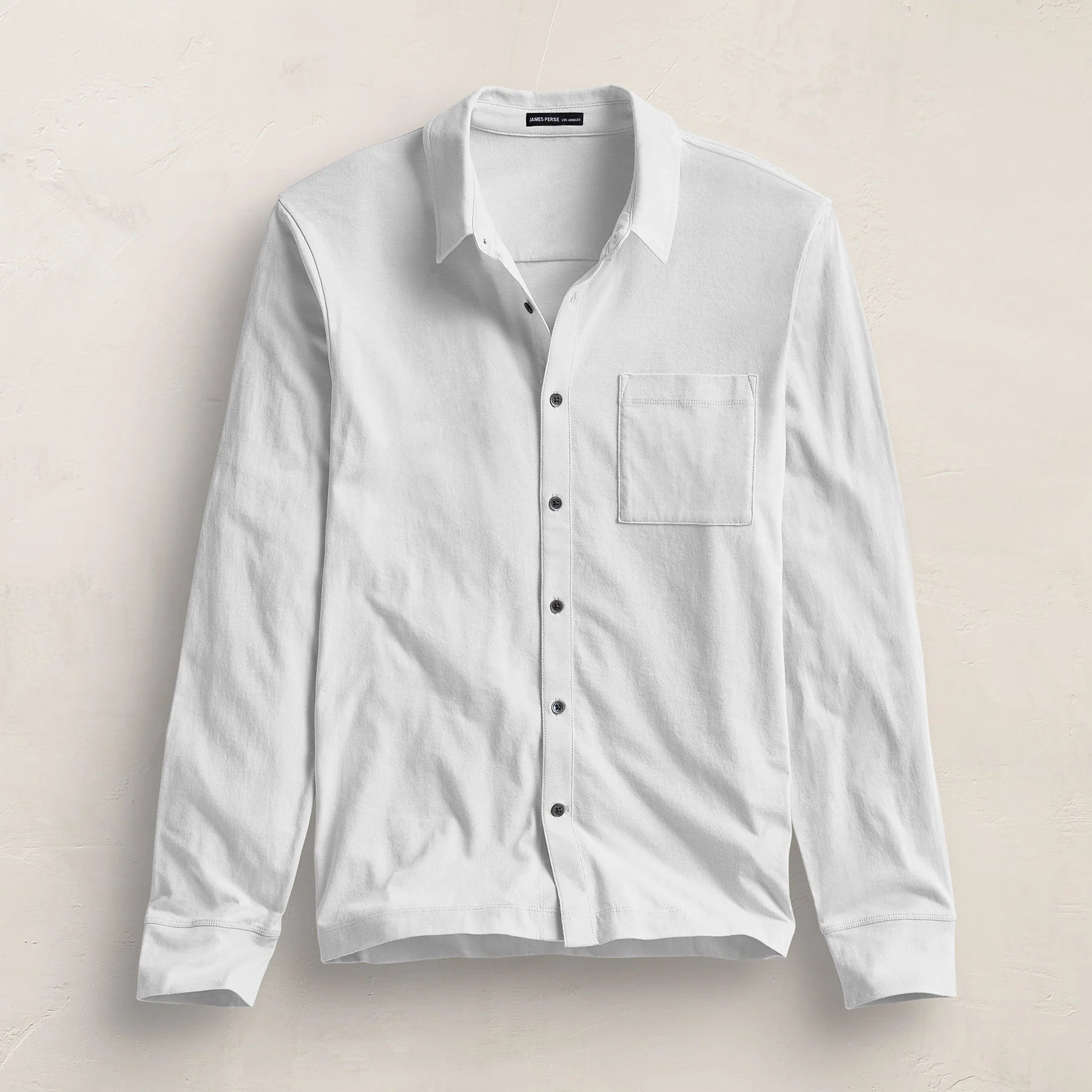 Our long sleeve Clean Finish Jersey Shirt is made in a luxe, clean finish jersey. Style details include a shirt collar, button front closure, single left chest pocket, full length sleeves and clean finished hems. Fit is trim, yet relaxed.