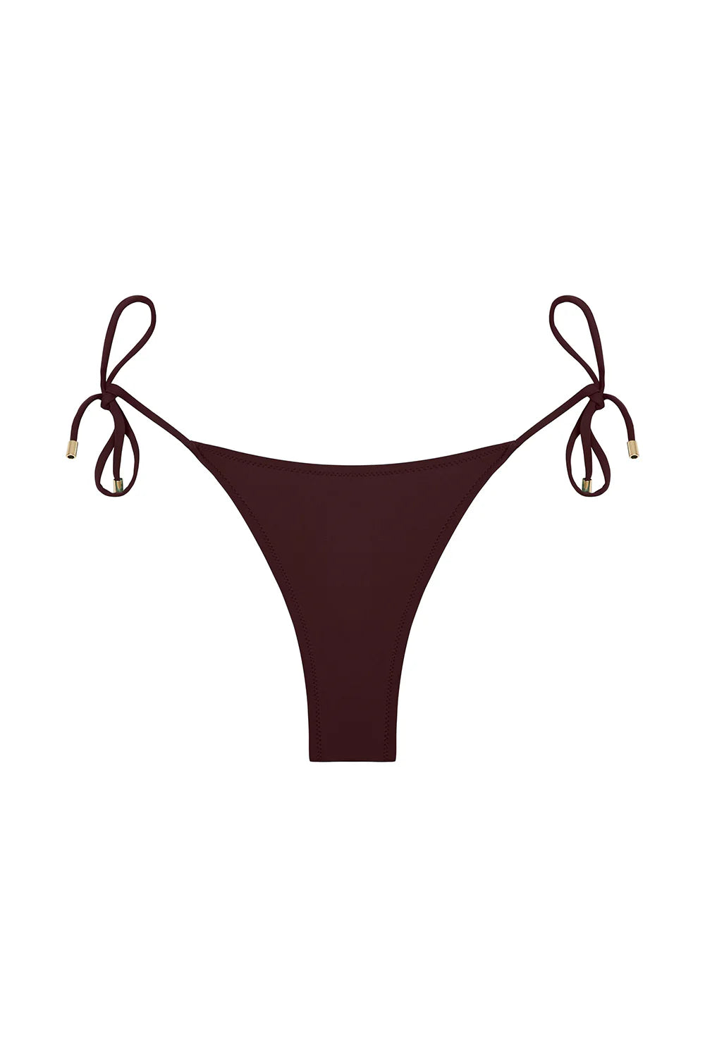 triangle bottom with minimal back coverage with adjustable side ties updated with gold-toned metal tips. fully lined for comfort and the right amount of coverage