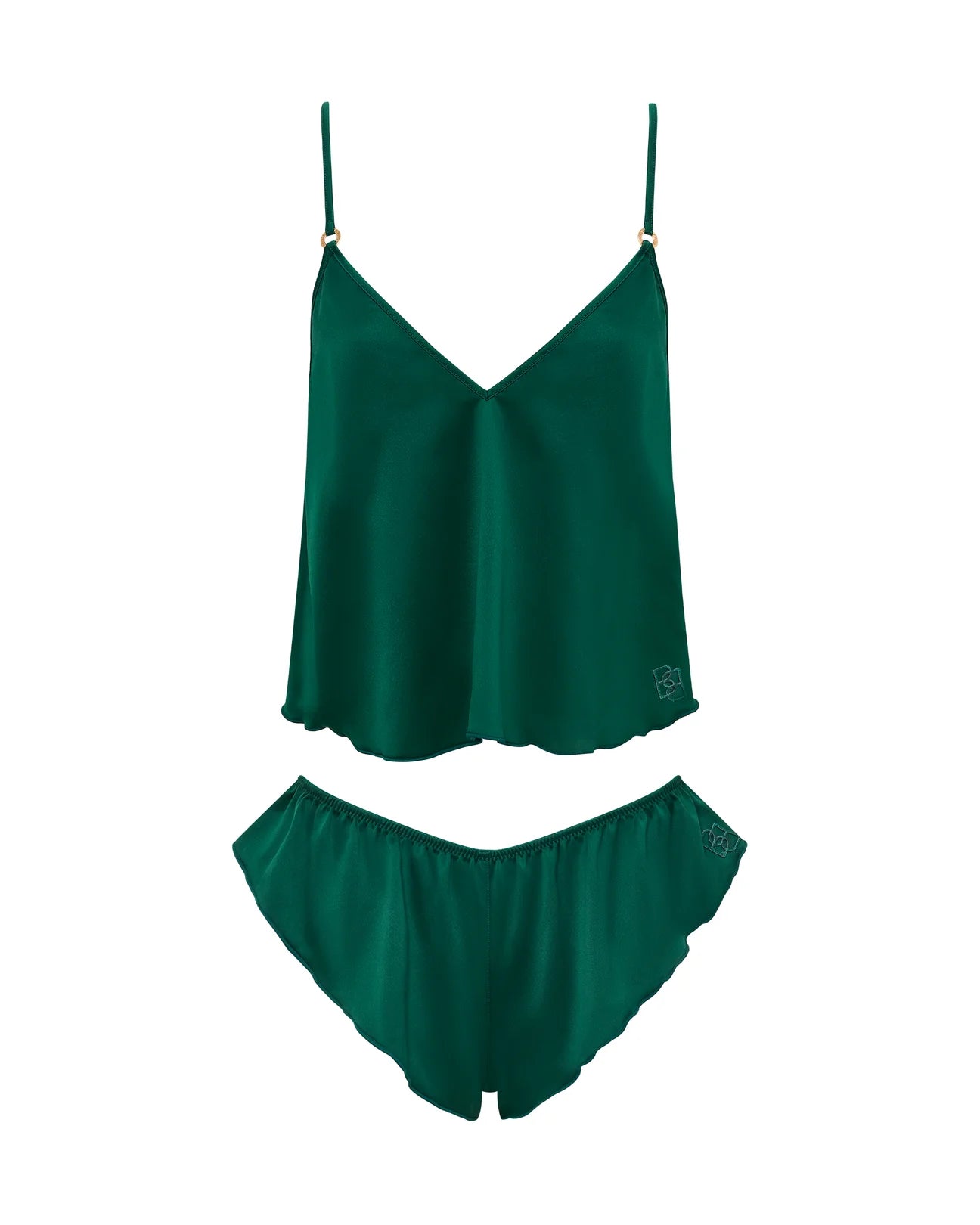 Up your nightwear game with the Faye cami and short set. This charming due showcases a flirty, provocative cut that flatters your shape, while the striking green hue adds a vibrant burst of colour to your collection, exuding a sense of playfulness and fun. One of the standout features of the Faye set is the subtle BB monogram, perfect for all true Bluebella fans.