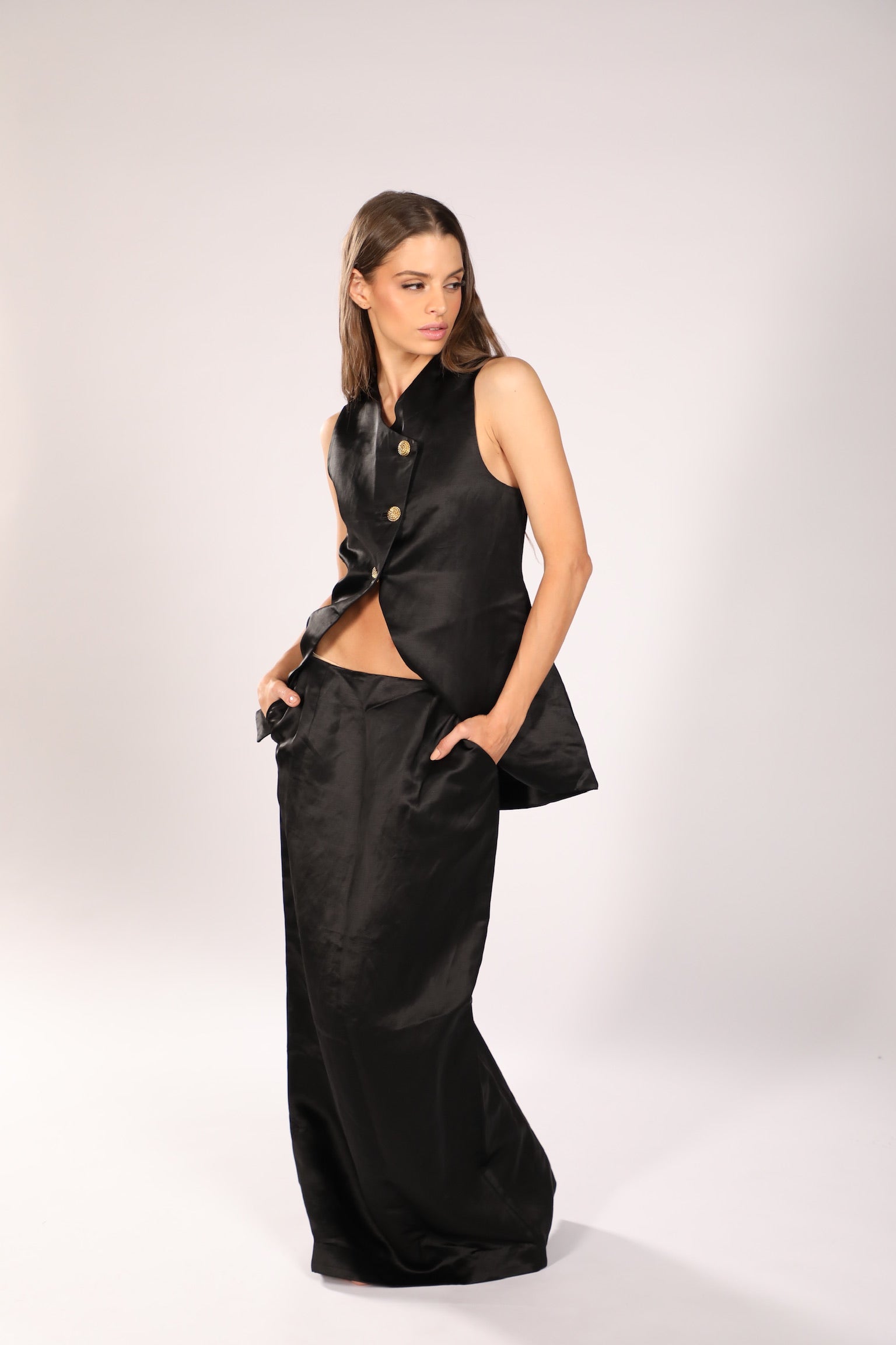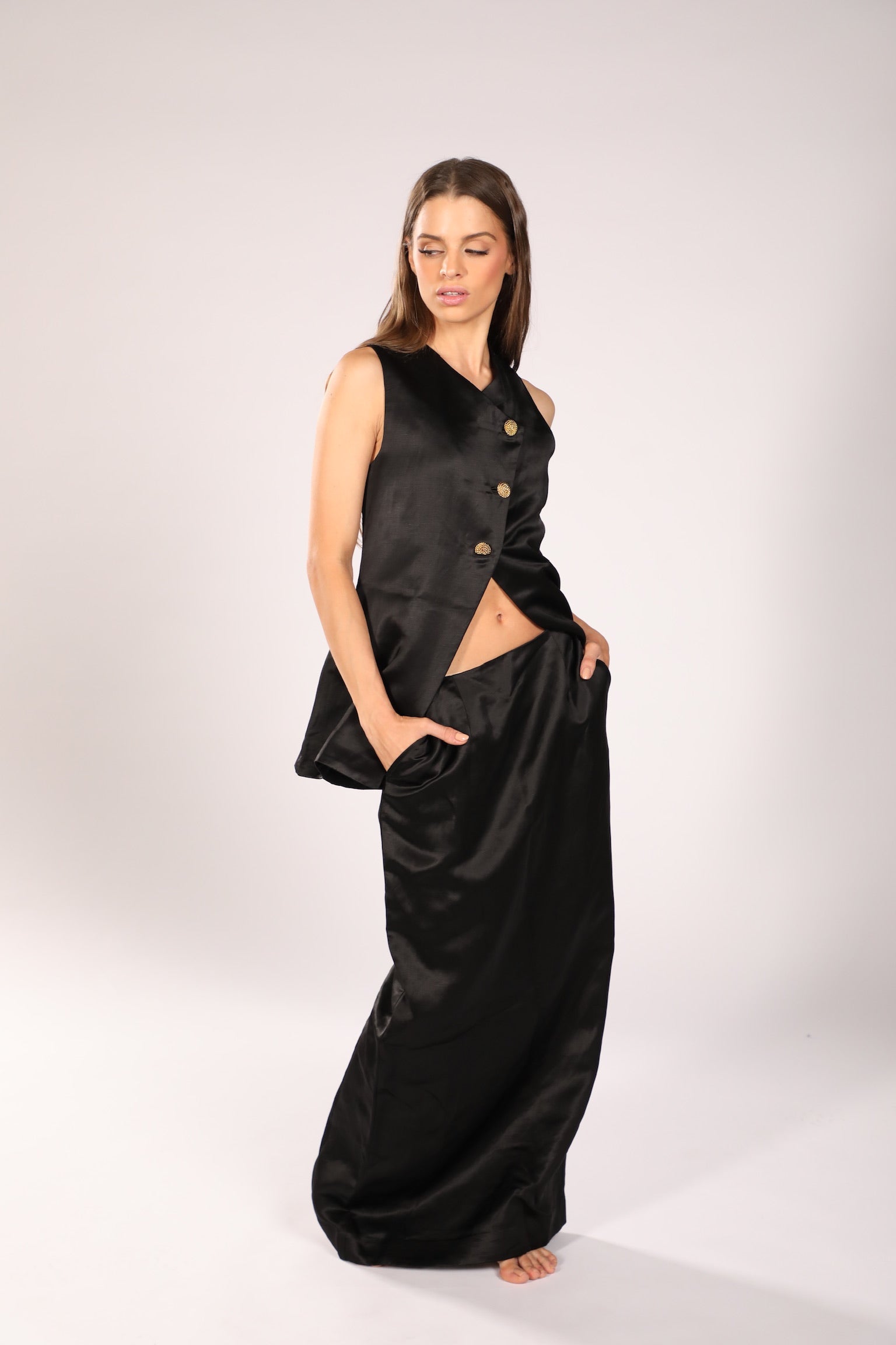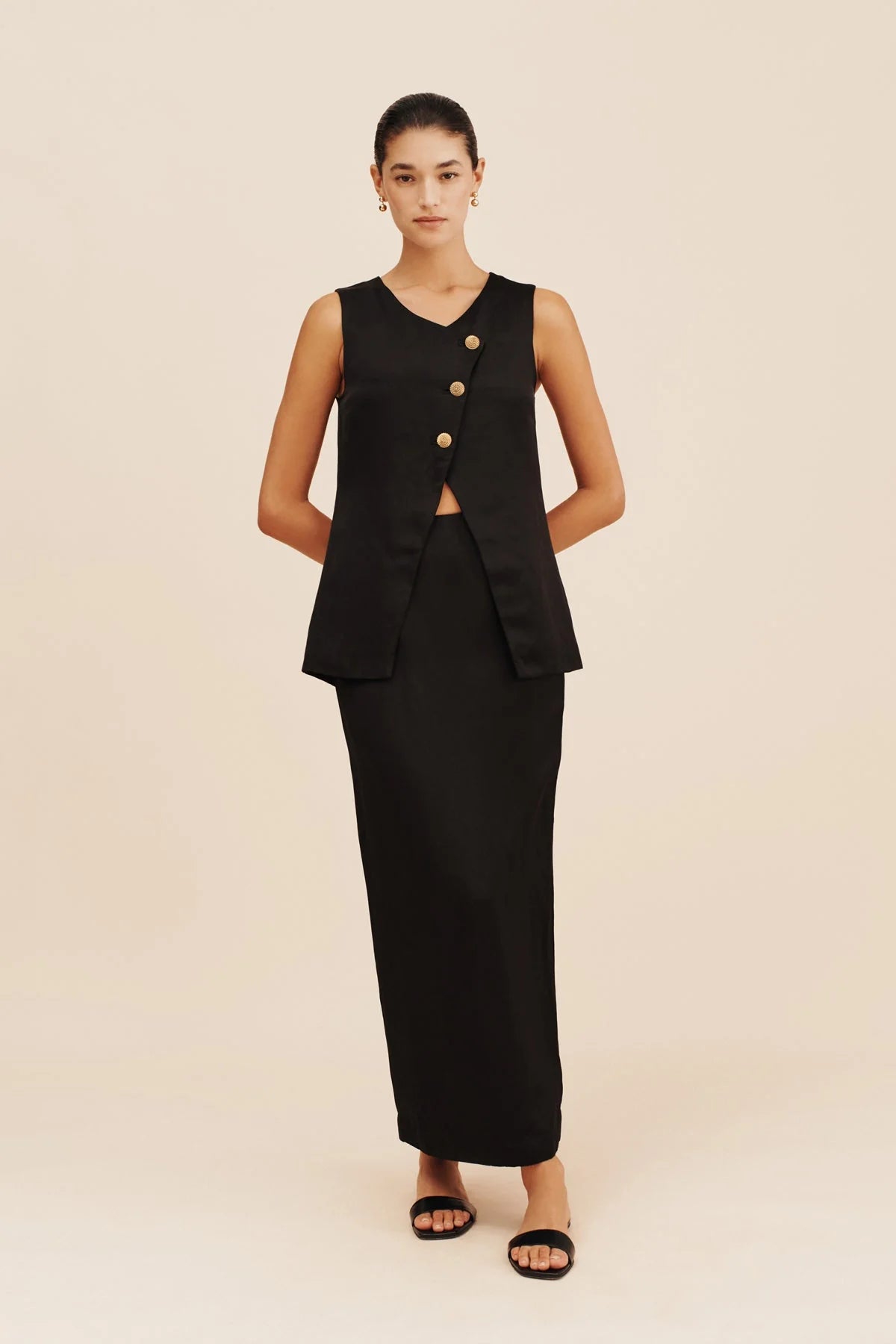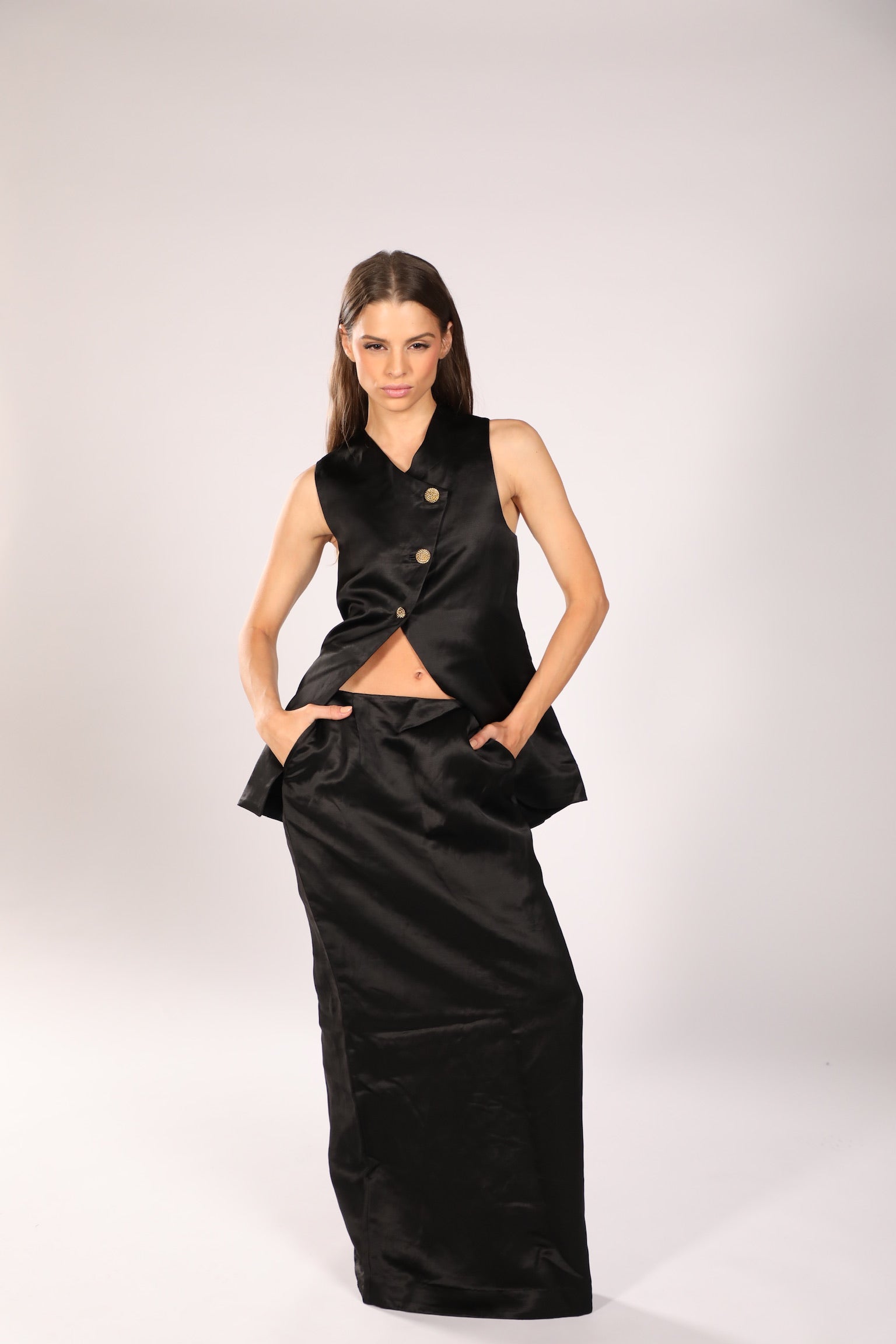 Simple yet elegant, the Gigi Pencil Skirt has a glossy satin finish, making it perfect for evening wear or special events. Designed to sit high on the waist, it falls to an elegant maxi hem and has a split at the back for movement. Styles yours as a set with the coordinating Gigi Gilet.
