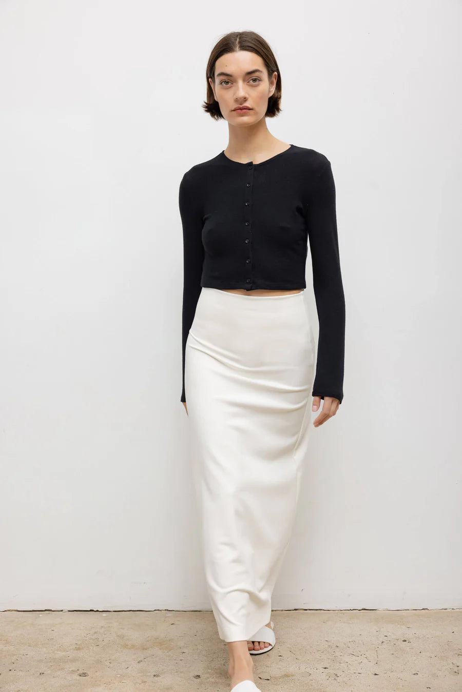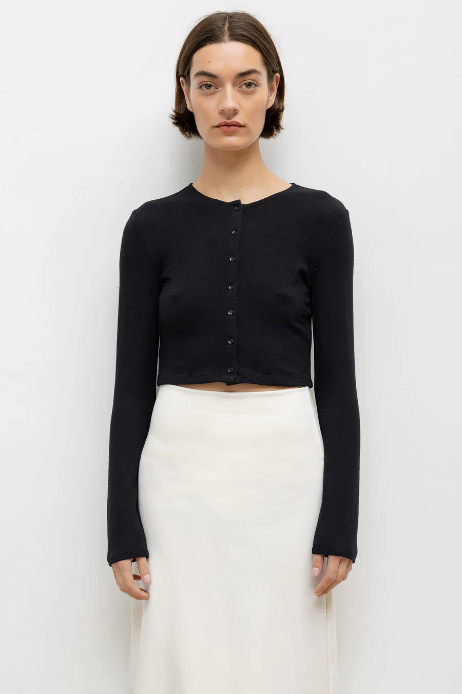 Cut in our buttery soft Lauren Sweater Jersey, The Lauren Crop Cardigan II is our bestselling everyday cardigan silhouette, featuring a cropped length, fitted full length sleeves and front button closure. We throw this over everything — t-shirts, turtlenecks, dresses, or by itself as a top.