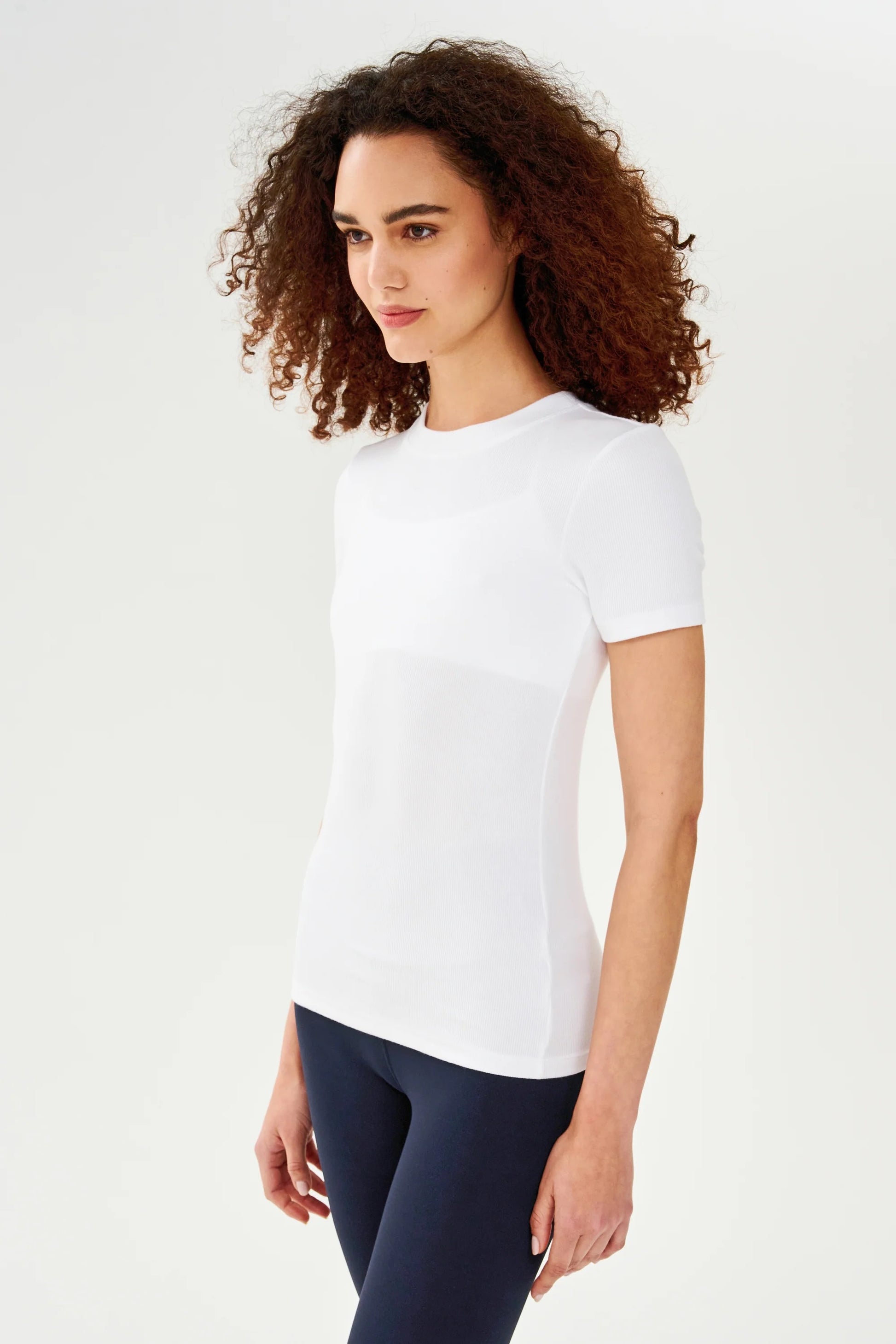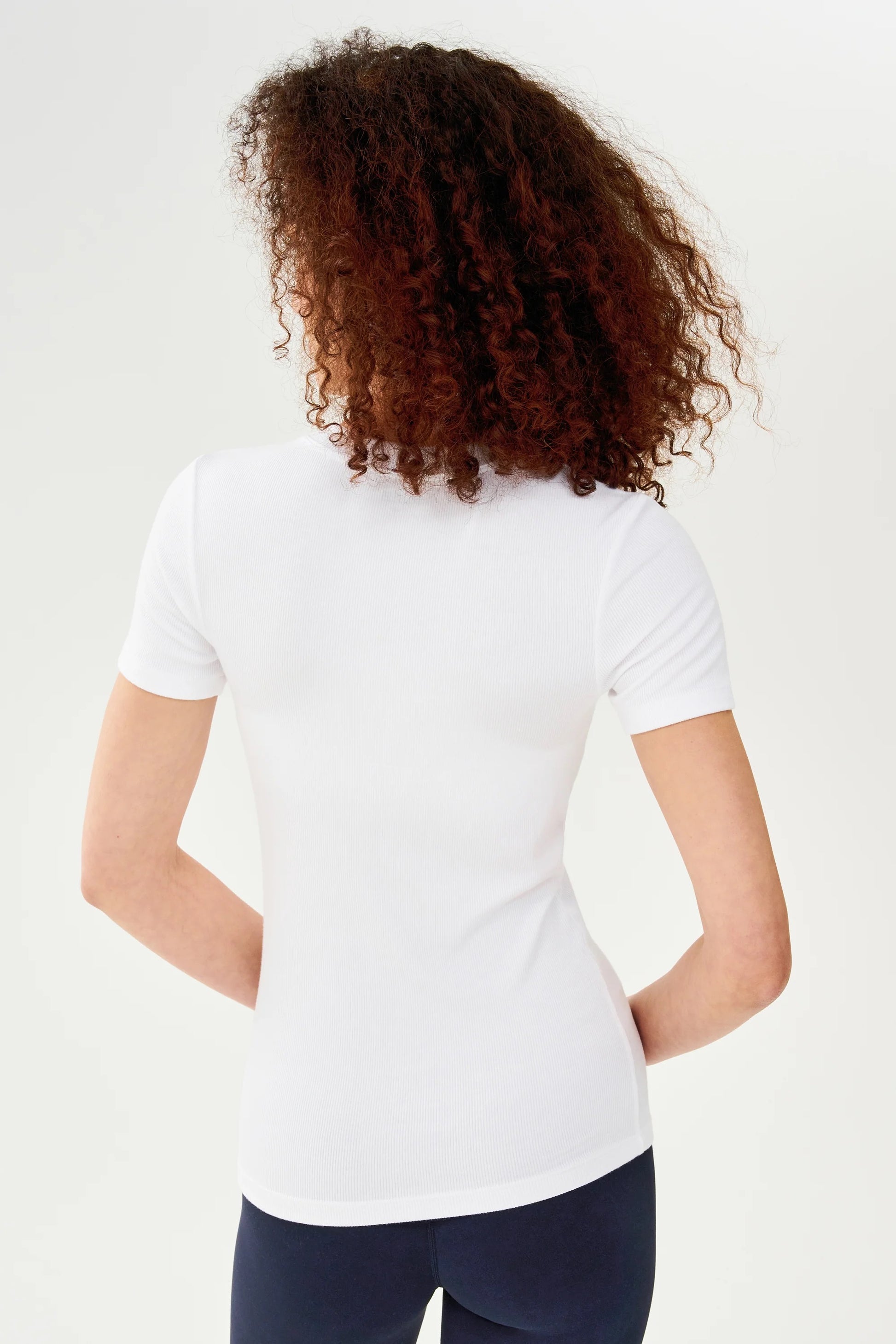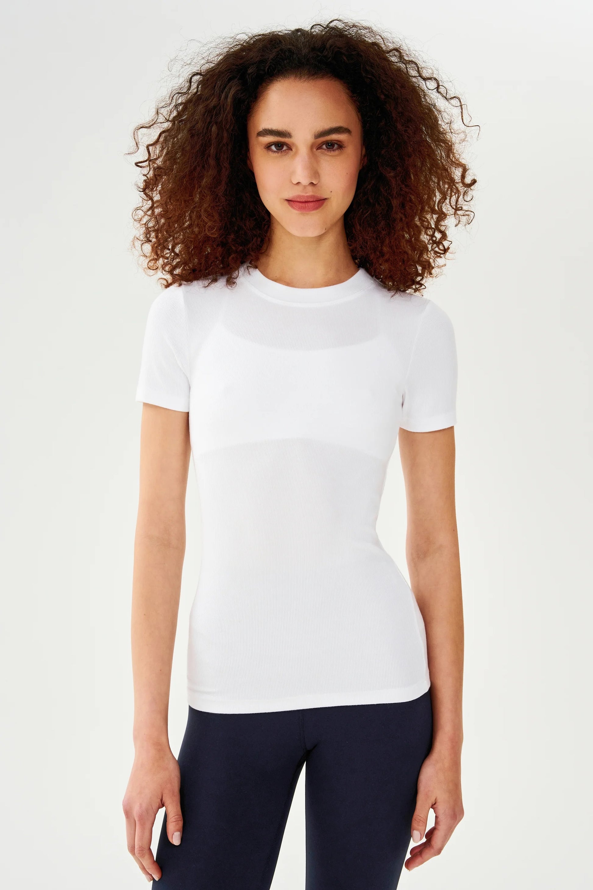 A semi-fitted short sleeve shirt that you can layer or wear alone. Super soft baby rib lays beautifully on the body.