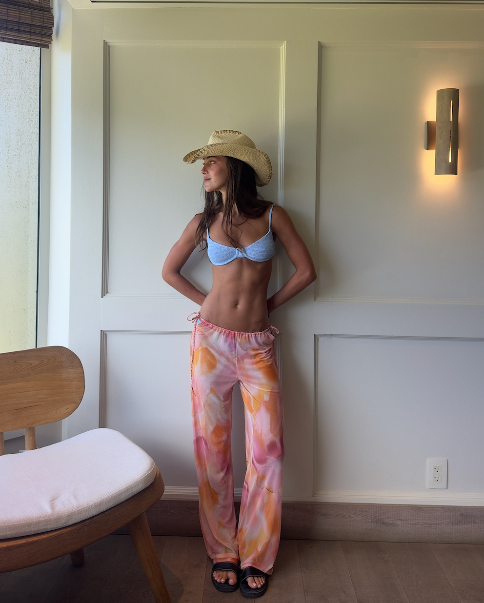 The Ollie are flowy, straight-leg pants with open-side ties.
